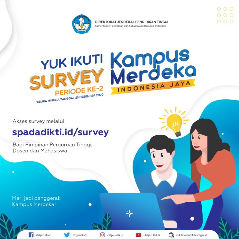 Link Pengisian Survey : https://spadadikti.id/survey Bapak/Ibu Pimpinan Perguruan Tinggi/Fakultas/Prodi, dosen, dan Mahasiswa Yth. Dalam rangka mengevaluasi pemahaman, kesiapan,