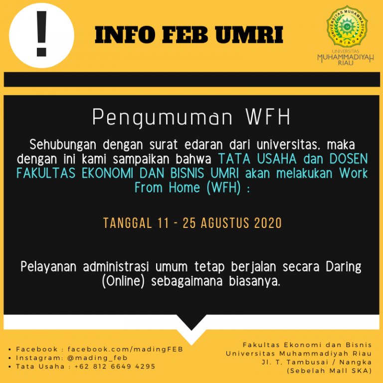 Assalam’alaikumWr, Wb Berikut kami sampaikan daftar nama mahasiswa yang mengajukan berkas Bantuan SPP Terdampak COVID – 19 dari masing-masing program studi yang lolos seleksi administrasi tahap 1 tingkat fakultas dan prodi sesuai dengan kuota per angkatan yang sudah ditetapkan. Berikut daftar nama mahasiswa tersebut: Akuntansi Ekonomi Pembangunan Keuangan & Perbankan Manajemen Berkas mahasiswa yang lulus…