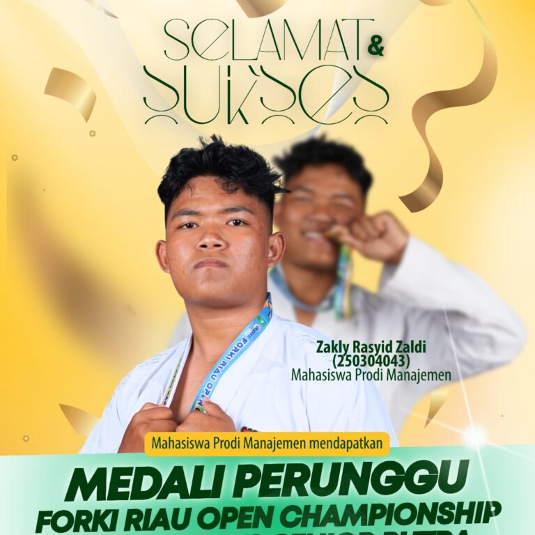 Pekanbaru, 4 Februari 2026 – Universitas Muhammadiyah Riau kembali melahirkan Mahasiswa berprestasi Alvira Rofian Putri dengan Nim 250304225, Program Studi Manajemen, Fakultas Ekonomi dan Bisnis. Alvira berhasil menyabet medali perunggu pada cabang angkat besi kelas U62kg senior putri dalam kejuaraan tingkat Event Riau National Taekwondo Championship 2026 yang diselenggarakan di kota Pekanbaru. Dengan penampilan tangguh…