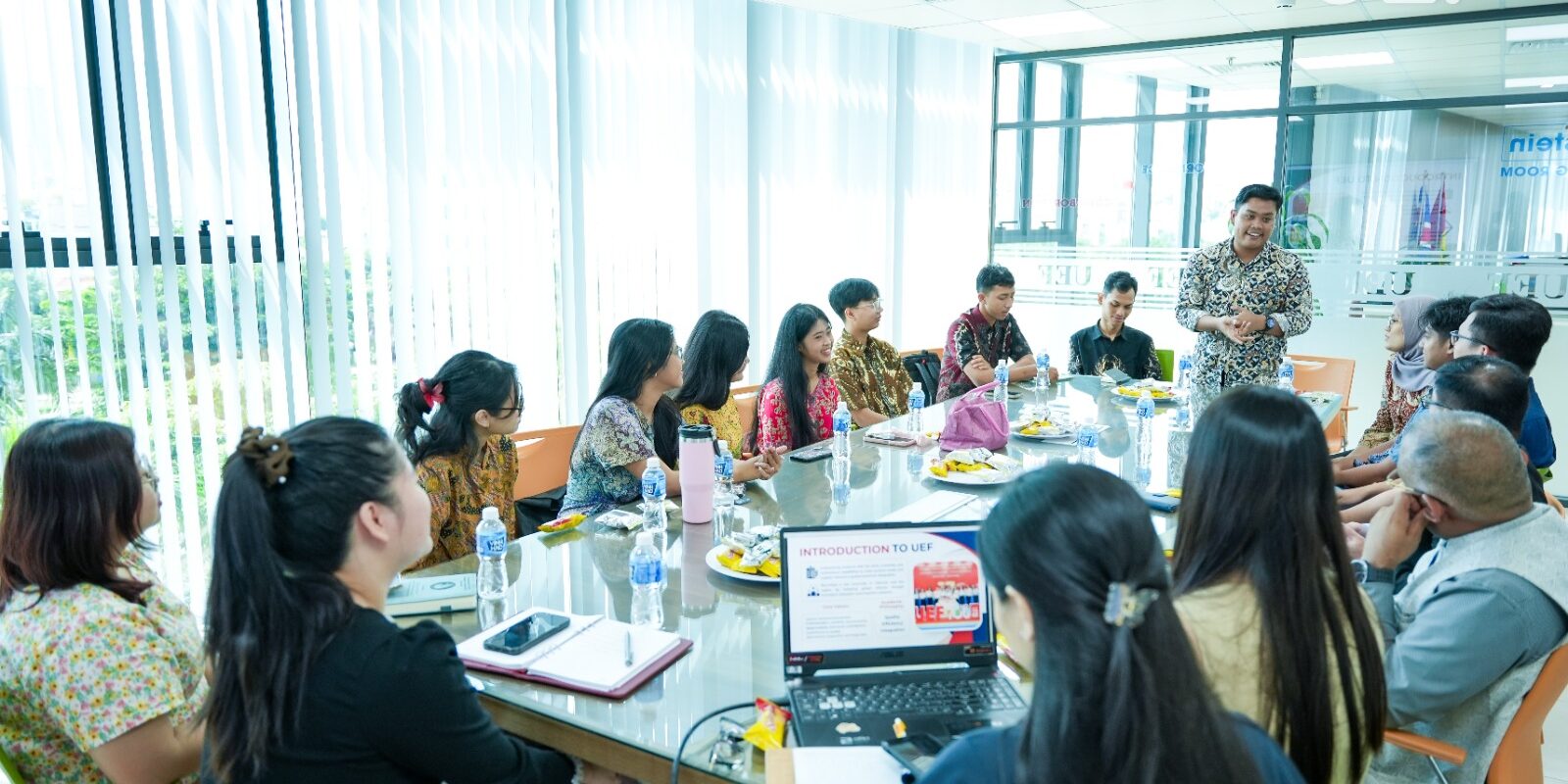 UEF (University of Economics and Finance) pada Kamis pagi, 18 September 2025, menyelenggarakan kegiatan orientasi bagi mahasiswa internasional dari Indonesia, yakni dari Perbanas Institute dan Universitas Muhammadiyah Riau (UMRI). Kegiatan ini menjadi pembukaan resmi program pertukaran studi dan magang selama lima bulan di UEF dan sejumlah perusahaan mitra di Vietnam. Acara ini dihadiri langsung oleh pimpinan universitas, termasuk Dr. Nhan Cam Tri selaku Wakil Rektor, serta para pimpinan fakultas yang menyampaikan sambutan hangat, perkenalan lingkungan belajar, hingga layanan pendukung yang dapat dimanfaatkan mahasiswa selama menempuh program.